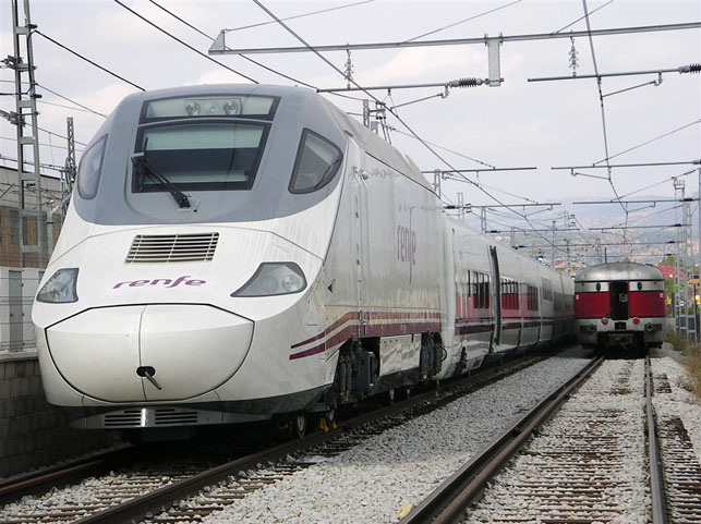 Anschließend haben wir uns das Renfe-Werk angeschaut in dem Peter vor einigen Jahren gearbeitet hat. Eines seiner Projekte konnten wir für etwa 5 Sekunden bestaunen, als der Talgo 350 mit 300 Km/h an uns vorbei rauschte. Tolles Teil! Wenige Kilometer weiter befindet sich der Bahnhof Alcador. Dort ist eigentlich nichts weiter außer paar Gleisen, dem alten Bahnhof und der Zufahrtsstraße. Zufällig haben wir dort eine brandneue Vossloh Diesellok des EVU Convensa entdeckt. Zu meiner Überraschung hatte diese Lok sogar einen eigenen Sicherheitsdienst der dort die ganze Zeit Wache geschoben hat :-D